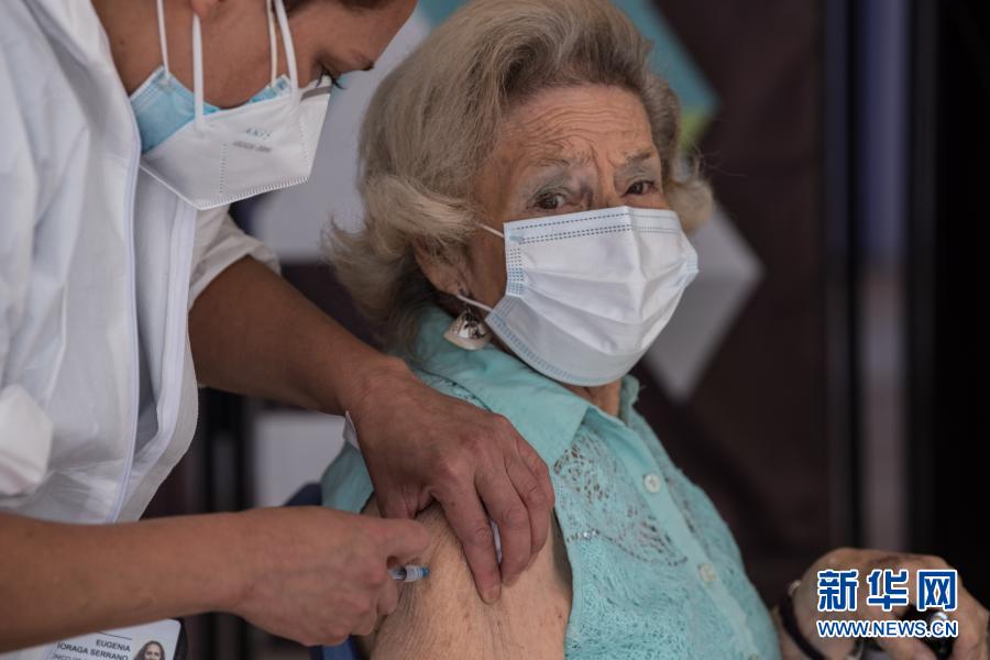 2月3日,一名老人在智利圣地亚哥市中心一家疫苗接种中心接种中国科兴公司生产的新冠疫苗。