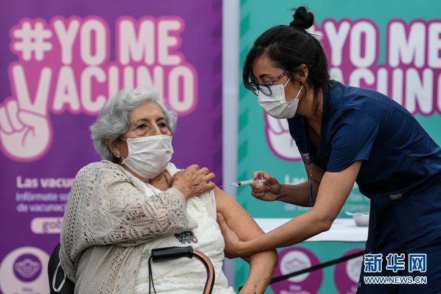 2月3日,一名老人在智利圣地亚哥市中心一家疫苗接种中心接种中国科兴公司生产的新冠疫苗。