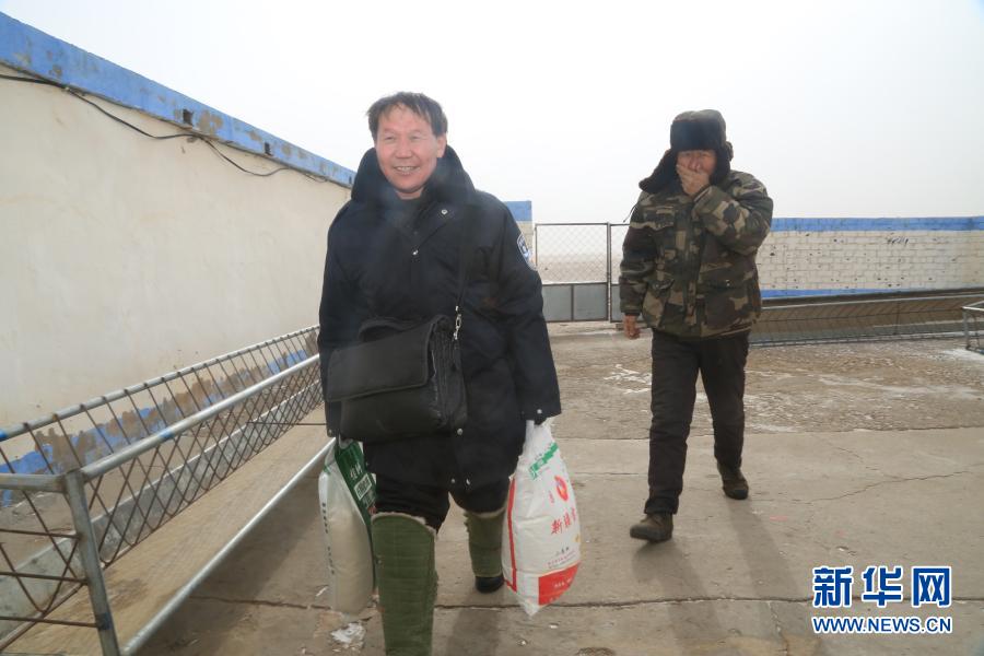 宝音德力格尔来到一户牧民家走访(1月27日摄)。新华社记者 刘懿德 摄