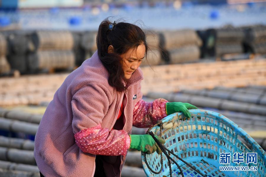 2月4日,巴木玉布木在渔排上忙碌。新华社记者 姜克红 摄