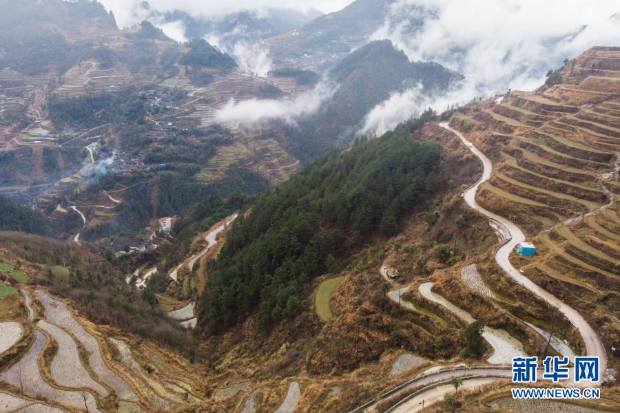 这是2月4日在湖南省花垣县民乐镇梳子山村拍摄的景色(无人机照片)。新华社记者陈思汗摄