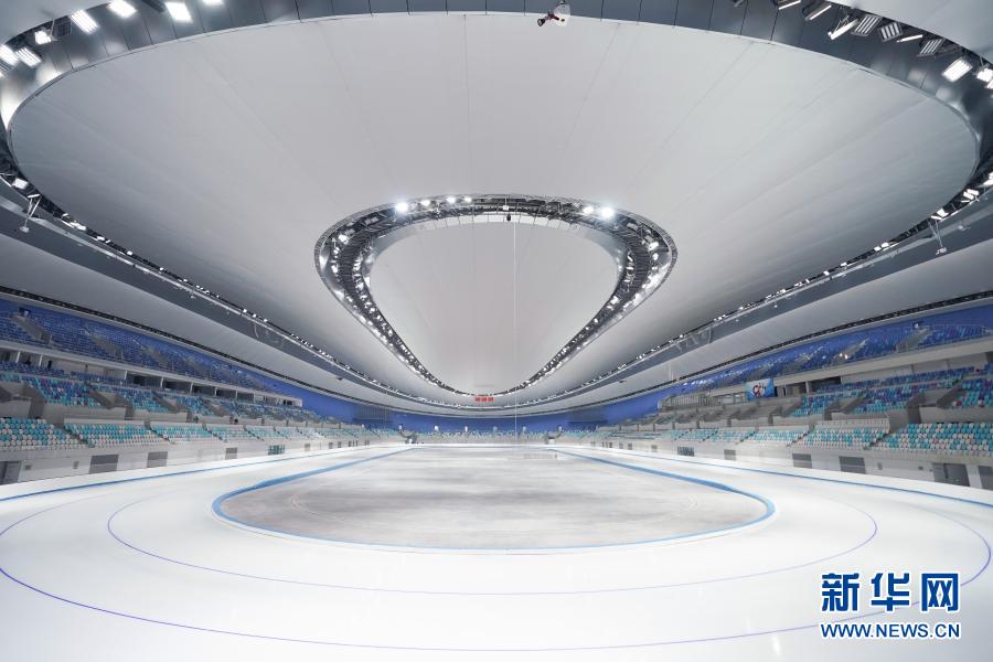 这是2021年1月22日拍摄的首次制冰完成后的国家速滑馆内景。新华社记者 鞠焕宗 摄