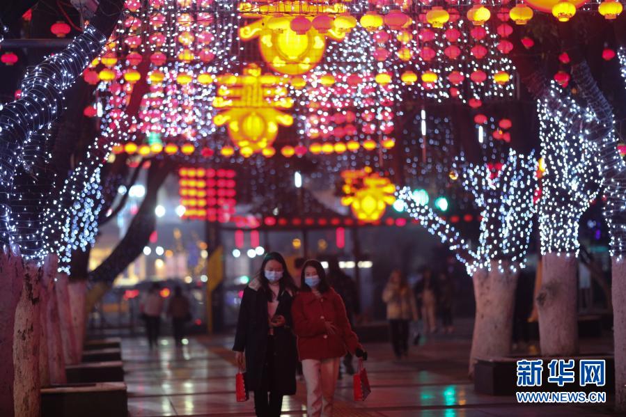贵阳街头点亮新春彩灯(2月6日摄)。