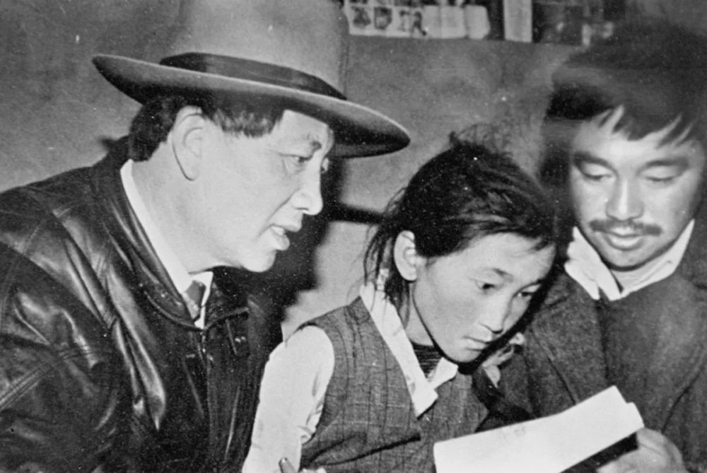 在西藏工作期间,孔繁森(左)在辅导藏族儿童读书(资料照片)。新华社 发