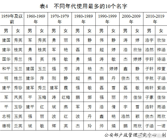 公安部发布2020年全国姓名报告