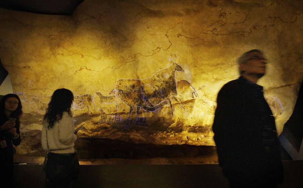 2017年,法国拉斯科洞穴壁画复原展在上海科技馆举行,人们参观一幅长5米的《黑牛图》