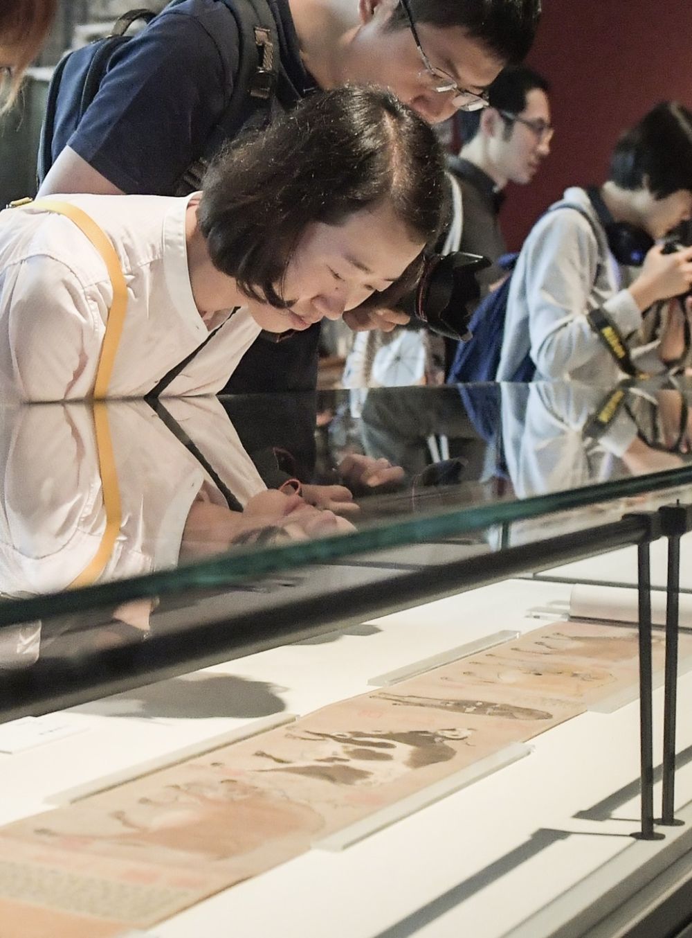 观众在“回归之路——新中国成立70周年流失文物回归成果展”上观看唐代韩滉的《五牛图》
