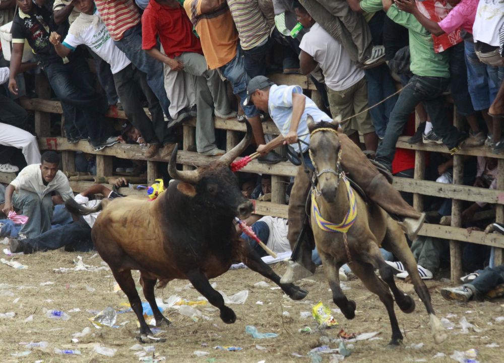 因海明威作品《太阳照常升起》而名满世界的奔牛节已经走出西班牙小城潘普洛纳,传入南美洲。