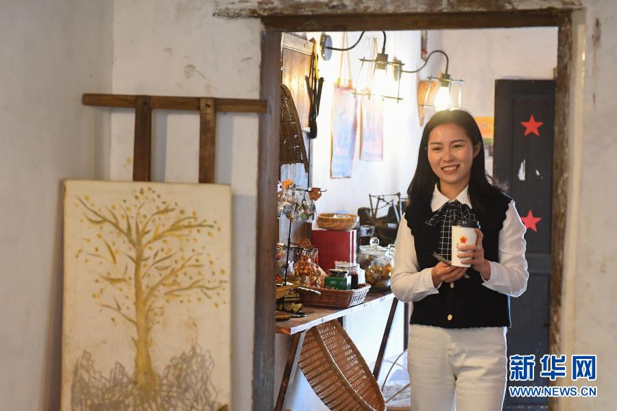 在沙洲瑶族村,朱梦嘉准备为客人端上奶茶(1月30日摄)。新华社记者 陈泽国 摄