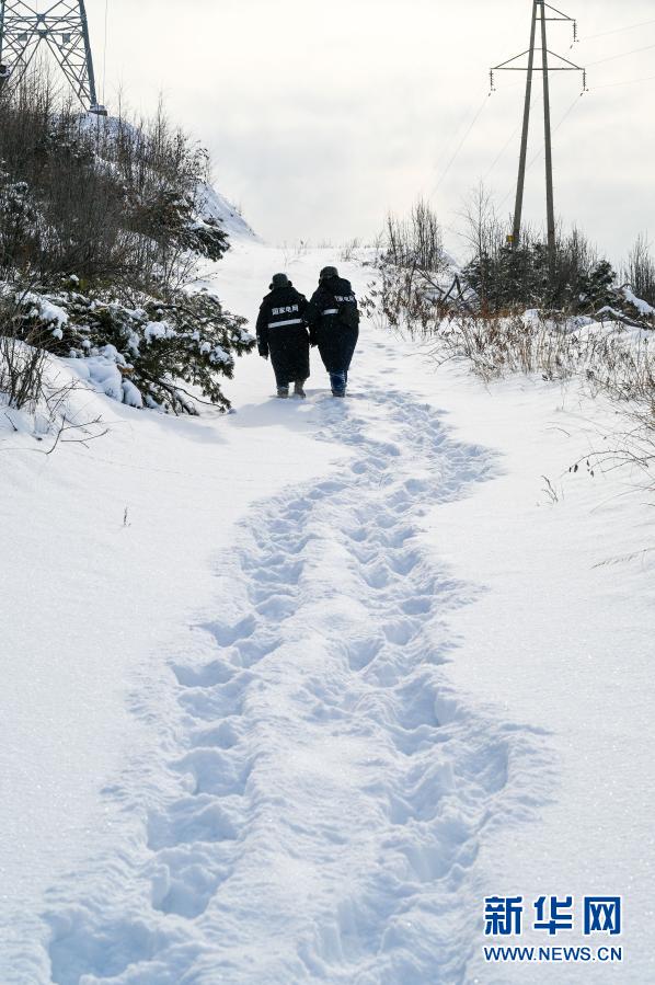 1月25日,申庆发(左)和徒弟李浩在巡线。新华社记者 连振 摄