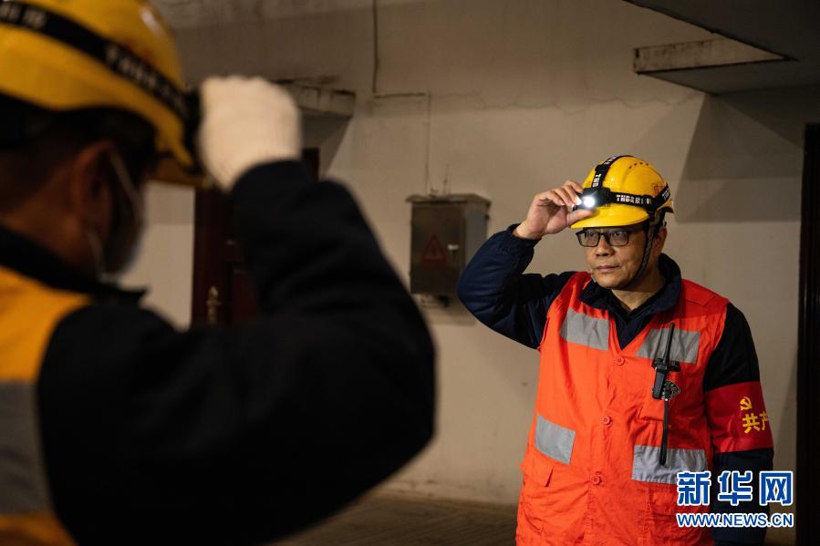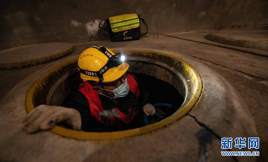 在成都东站,李顺洪检查完地下供水管道后返回地面(1月24日摄)。新华社记者 王曦 摄