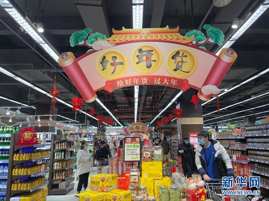 2月7日,市民在沈阳一家超市选购年货。新华社记者 李恒 摄