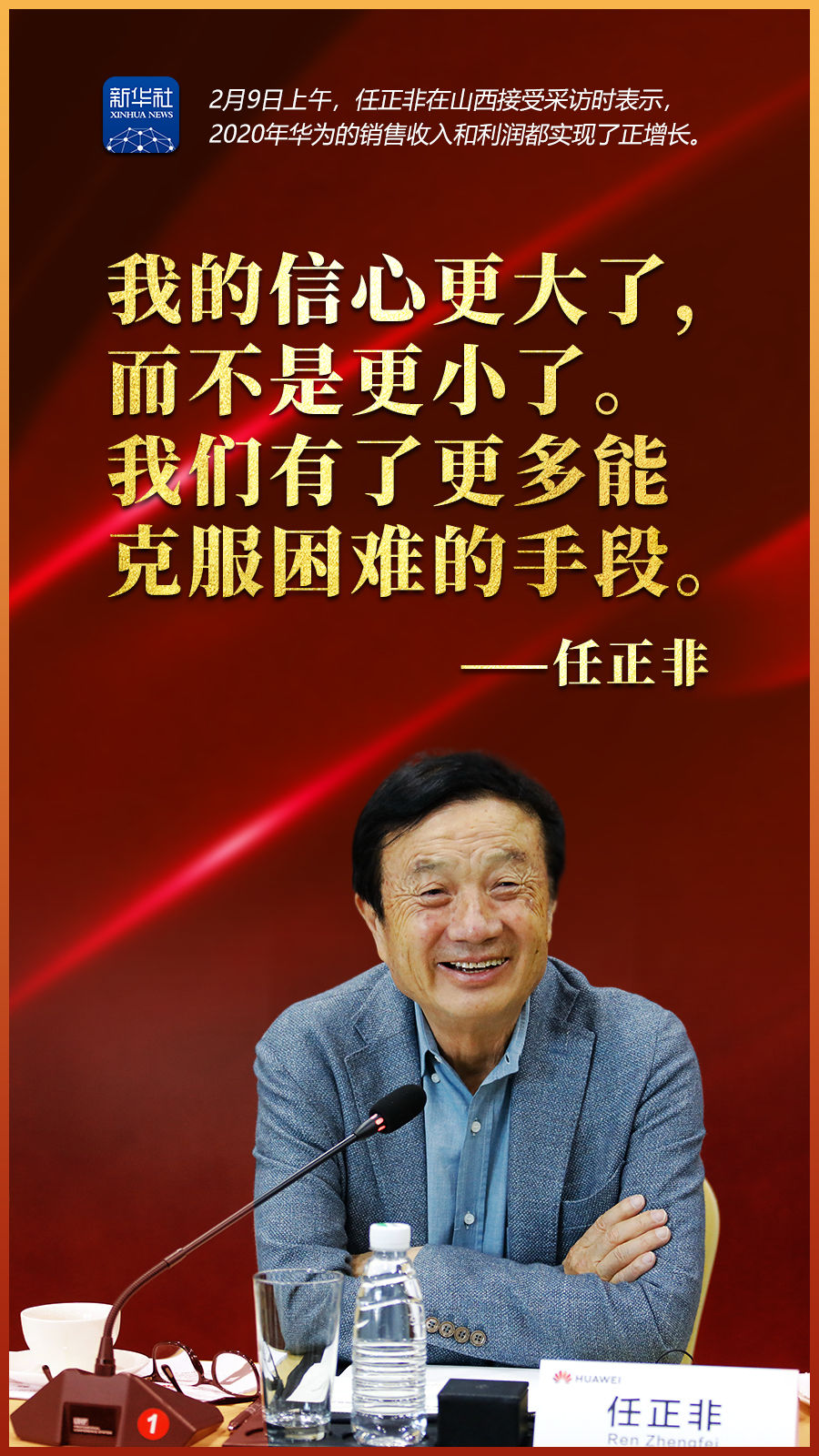 新华社太原2月9日电 题:“我的信心更大了”——与任正非面对面