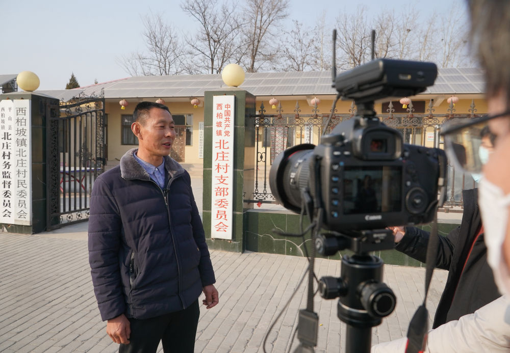 2月9日,平山县西柏坡镇北庄村党支部书记封红卷在接受媒体采访。新华社记者 杨世尧 摄