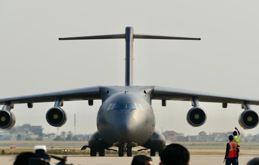 2月7日,运送中国援助柬埔寨新冠疫苗的飞机降落在金边国际机场。(新华社记者毛鹏飞摄)