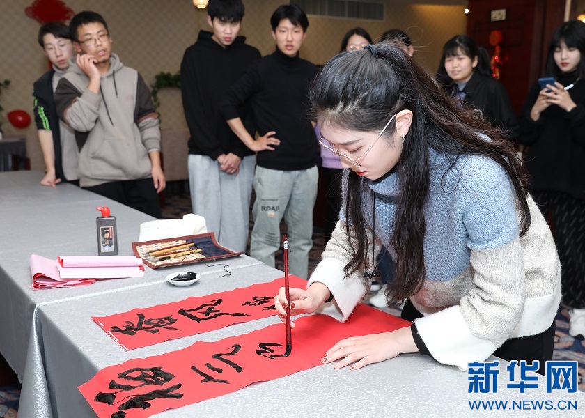 图为“临时班级”的同学们正在书写春联。新华网发 赖江华 摄