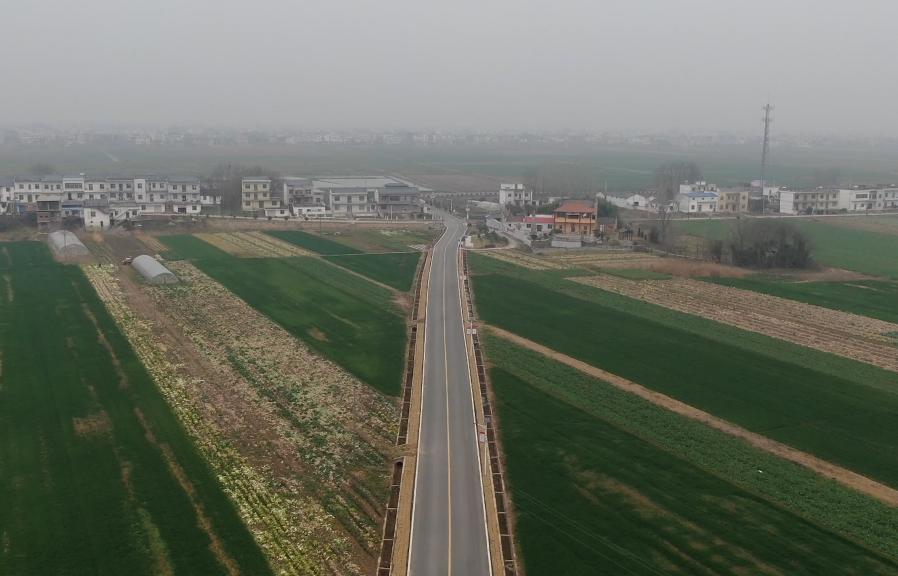 江新洲新改造的公路,两侧为农户种植作物。(无人机照片)新华社记者 彭昭之 摄