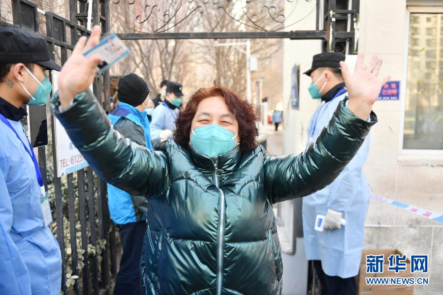2月10日,一名居民走出解除封闭管控的大兴区融汇社区。新华社记者 孙瑞博 摄