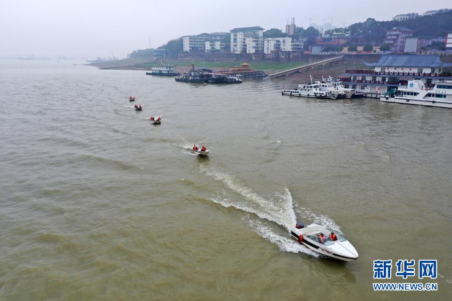 2月11日,武警湖南总队岳阳支队岳阳船艇大队官兵在洞庭湖进行水上巡逻执勤。 新华社发(麻荣毅 摄)