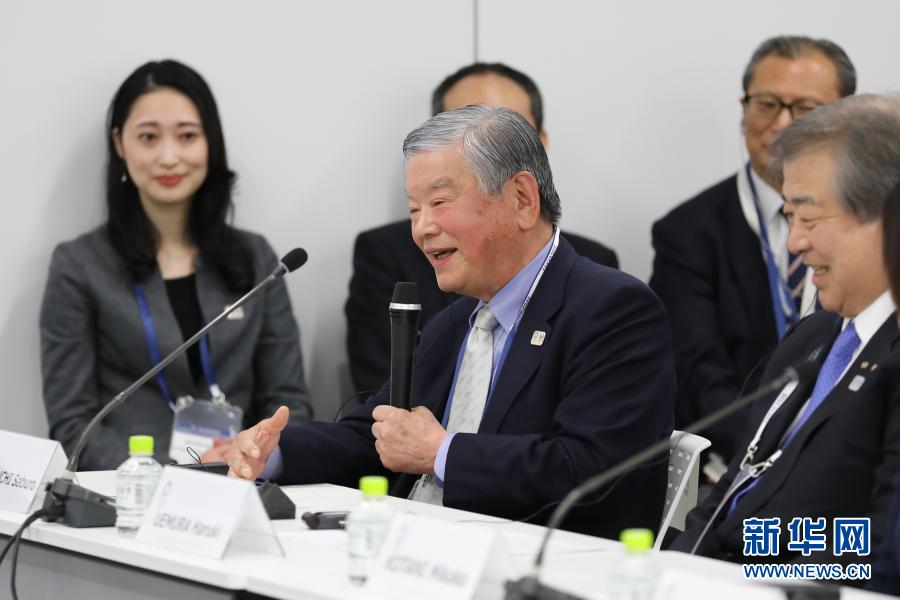 这是2020年2月13日,东京奥运村村长川渊三郎(中)出席2020年东京奥运会第十一次项目审议会的资料照片。新华社记者 杜潇逸 摄