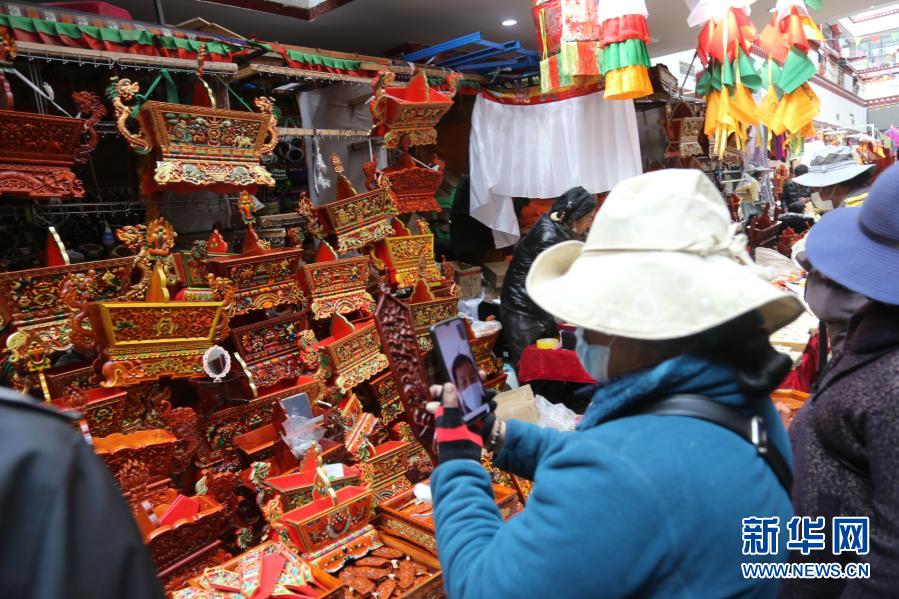在拉萨八廓商城,七彩的酥油花、精美的切玛盒、飘香的卡塞(一种油炸面食)、寓意吉祥的羊头……藏式特色年货琳琅满目,前来采购的人络绎不绝。藏族姑娘桑吉卓玛最近在商城支起了小摊,售卖青稞苗、酥油花等新年用品,“前两年我们家脱了贫,好生活要靠自己双手来创造。”新年新气象,口罩难掩她喜悦的笑容。