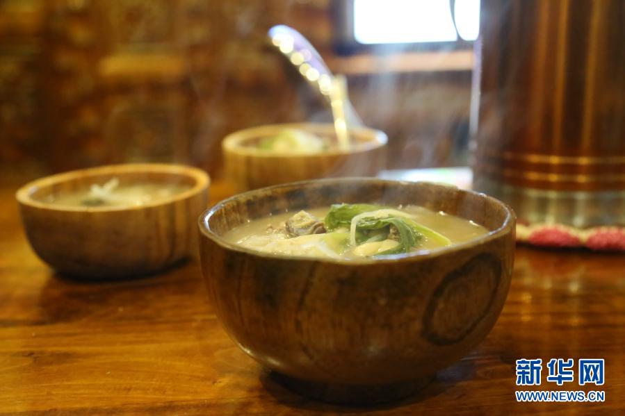 “古突”夜当晚,拉萨市恩惠苑社区居民次仁巴珠家热气腾腾的“古突”(2月10日摄)。新华社记者 张兆基 摄