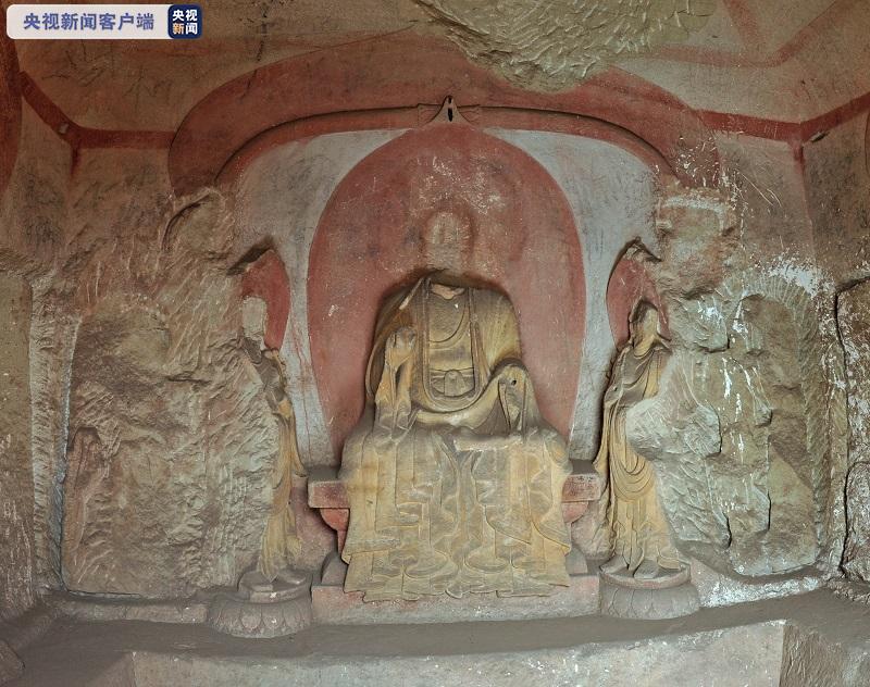 佛首已经回归,那佛身今又何在呢?山西太原天龙山石窟整体为砂岩质,自然风化侵蚀较为严重,在其中面积最大的第8窟中,该佛首的佛身部分已仅能看出大致轮廓,而佛身细部的雕刻纹饰已经完全看不到了。