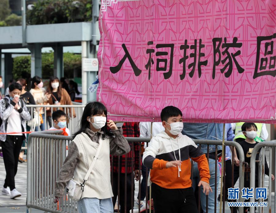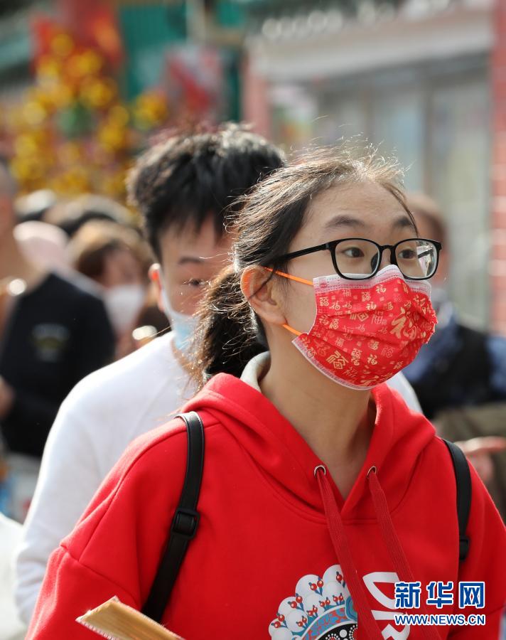 2月12日,在香港黄大仙广场,市民戴口罩出行。新华社记者 李钢 摄