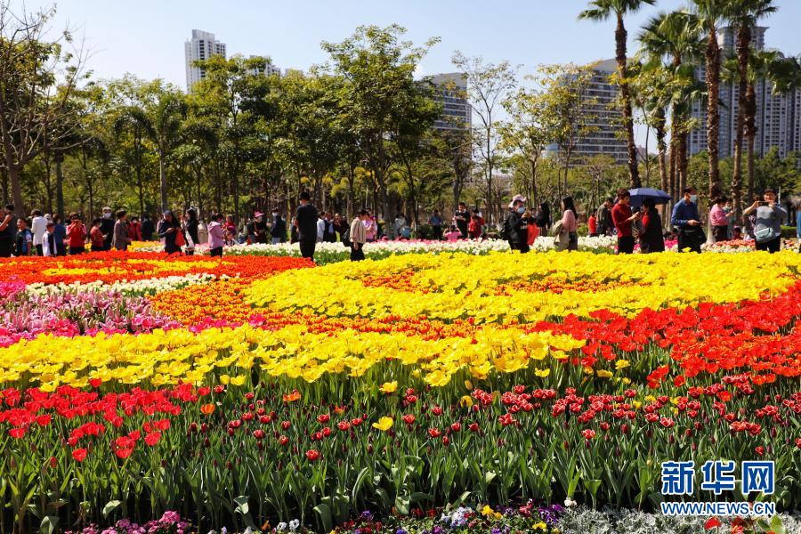 2月14日,游客在福建省厦门市园博苑赏花。新华社发(周道先 摄)