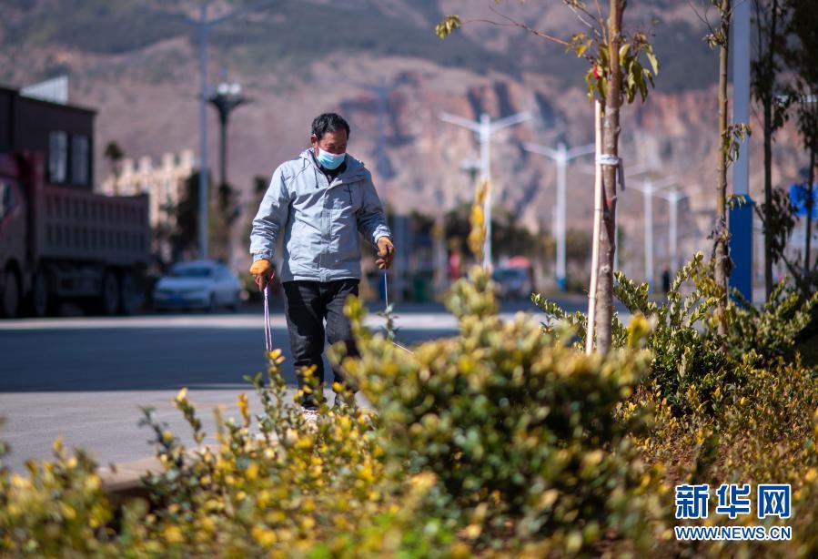 石元顺在安置小区打扫卫生(2月10日摄)。新华社记者 江文耀 摄