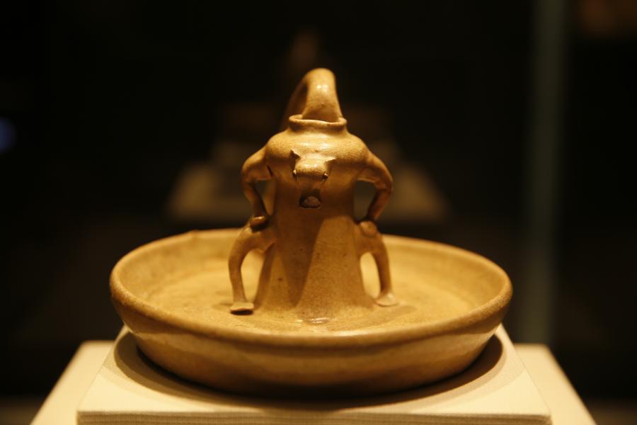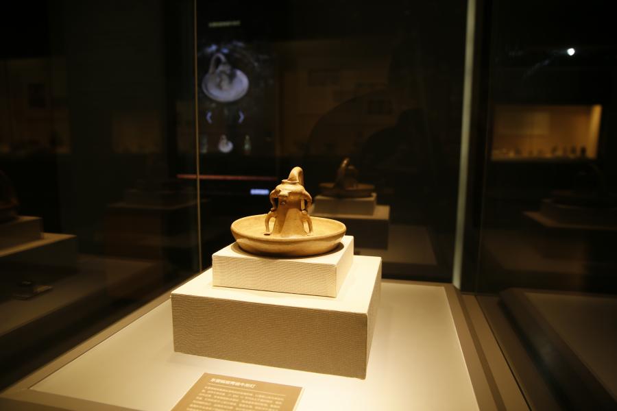 收藏于浙江省博物馆的国家一级文物东晋瓯窑青瓷牛形灯 宋立峰摄