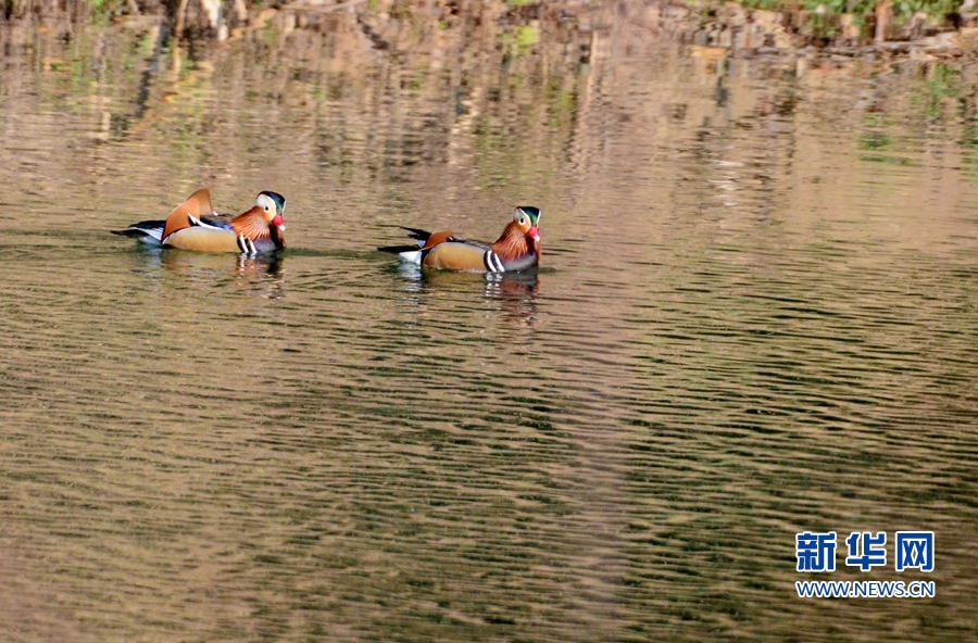 春暖花开,鸳鸯戏水。新华网发(徐庭盛 摄)