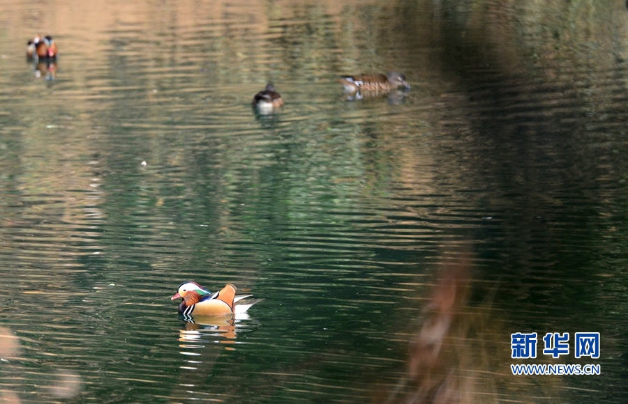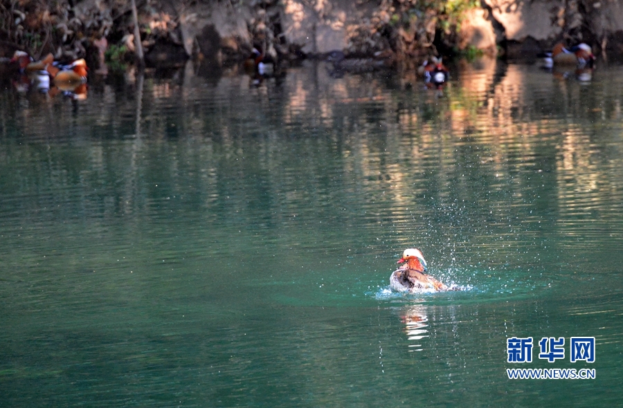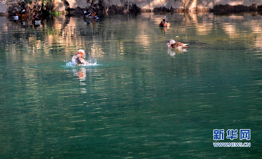 鸳鸯们在水中追逐、嬉戏。新华网发(徐庭盛 摄)