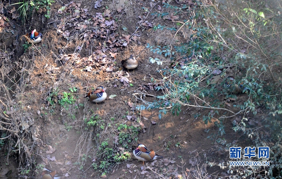 在岸上栖息的鸳鸯。新华网发(徐庭盛 摄)