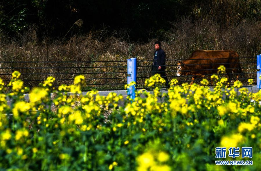 2月17日,贵州省独山县影山镇翁奇村的村民牵牛下地劳作。