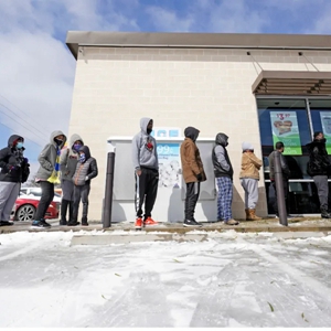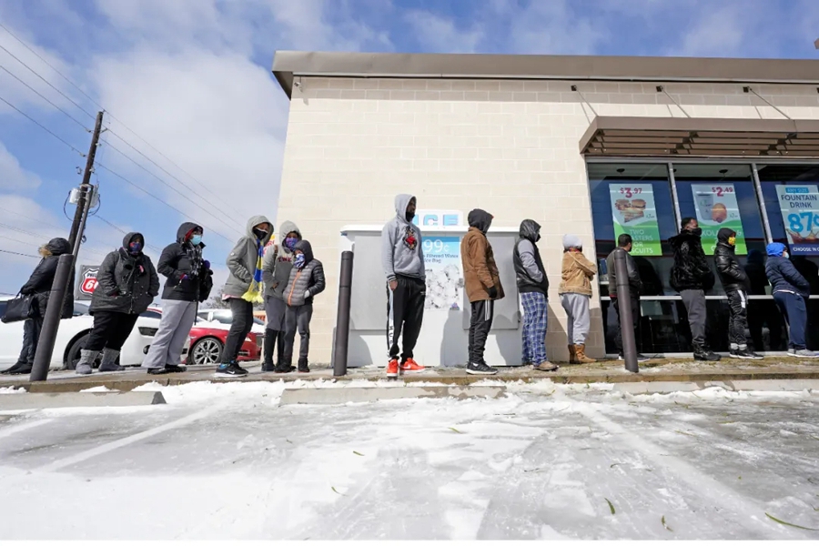 2月15日,在美国得克萨斯州休斯敦,人们在杂货店门口排队。新华社/美联