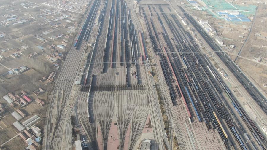 济西站调车作业俯视图。(中国铁路济南局集团公司济南工务段供图)