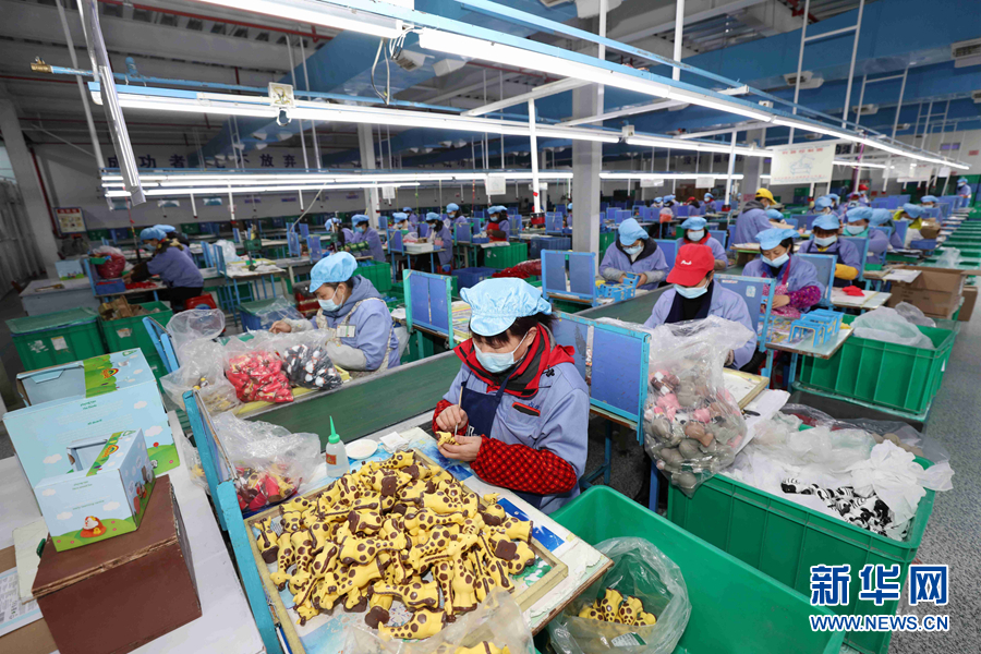 2月19日,在湖南张家界高新技术产业开发区一塑胶制品企业车间内,工人在赶制玩具订单。