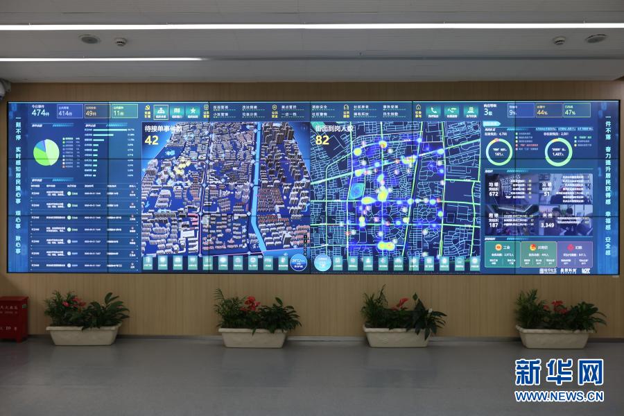 在上海市静安区临汾路街道办事处拍摄的“一网统管”智慧大屏(2020年9月21日摄)。新华社记者 王翔 摄