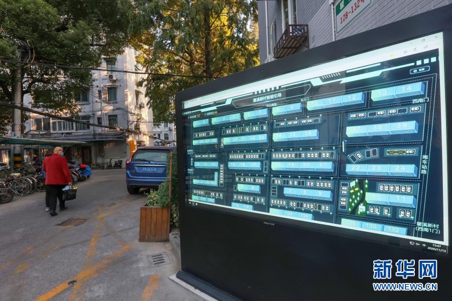 上海黄浦区半淞园路街道瞿溪新村小区入口拍摄的停车智能引导系统(2020年11月13日摄)。新华社记者 王翔 摄