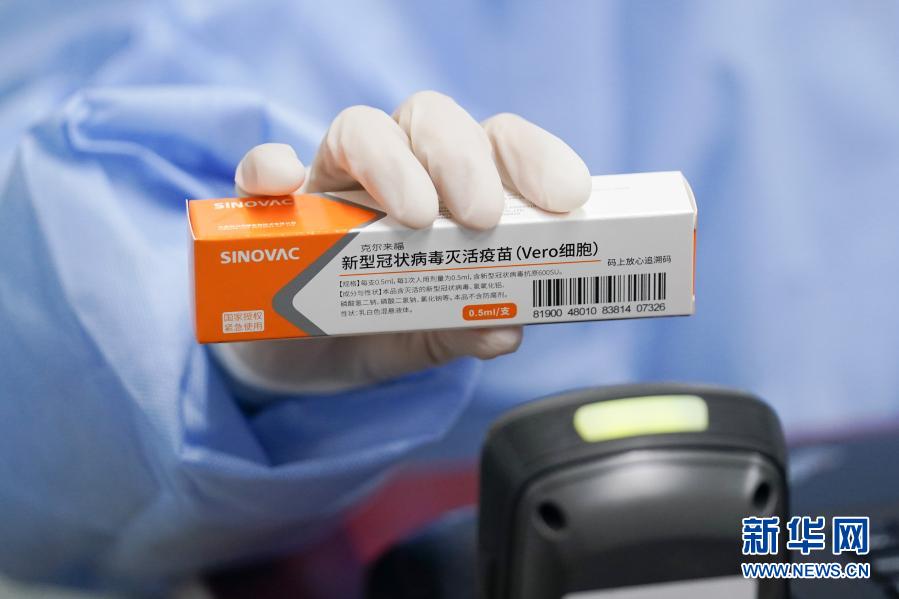 2月20日,在北京市大兴区瀛海镇一处疫苗接种点,医护人员在扫描新冠疫苗电子监管码,准备疫苗接种工作。新华社记者 鞠焕宗 摄