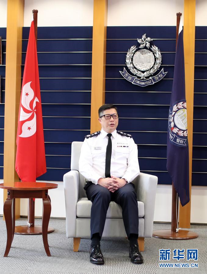 香港警务处处长邓炳强接受采访(1月28日摄)。新华社记者 李钢 摄
