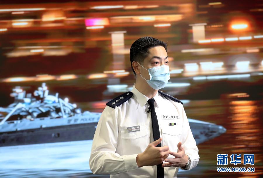 香港警务处公共关系科总督察翁海城接受采访(2月9日摄)。新华社记者 李钢 摄