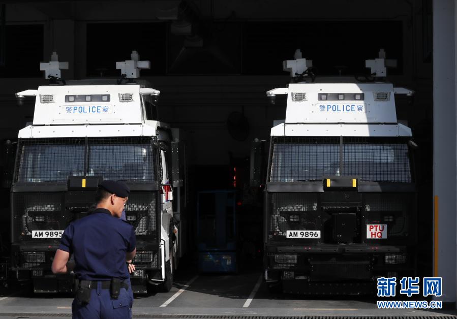 在香港警务处警察机动部队总部,警车待命(2月4日摄)。新华社记者 李钢 摄