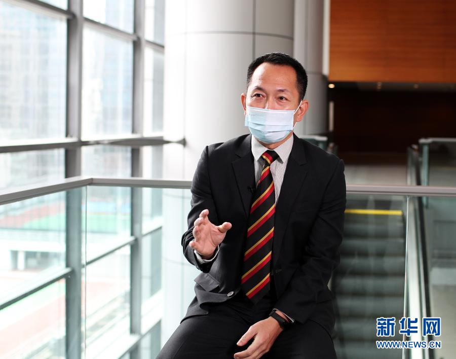 香港警务处公共关系科总警司郭嘉铨接受采访(2月4日摄)。新华社记者 李钢 摄