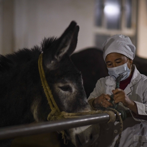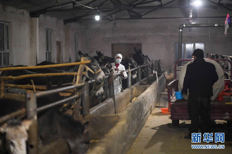 待天亮,这些新鲜驴奶将以每公斤30元的价格被当地一家企业上门收购。随后,他们将开始一天的忙碌:配比草料、饲喂毛驴、打扫圈舍……