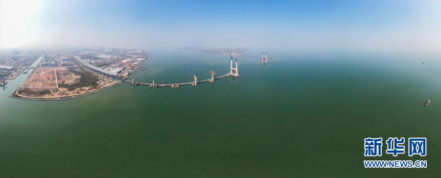 这是位于广东省中山市马鞍岛的深中通道横门大桥建设现场(2021年2月2日摄,无人机照片)。