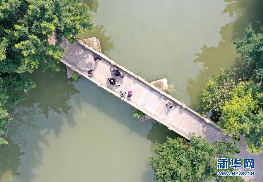 2月23日,市民行走在福州白马桥上(无人机照片)。新华社记者 林善传 摄