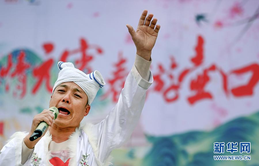 2月24日,歌手杨平安在陕西壶口瀑布景区为游客演唱陕西民歌。