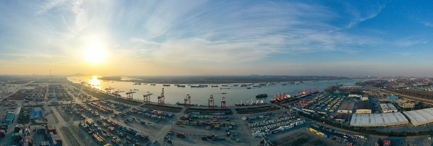 国内某港口创新物流产品,推进集散转换、陆改水等业务发展场景(无人机全景照片)。新华社记者 季春鹏 摄